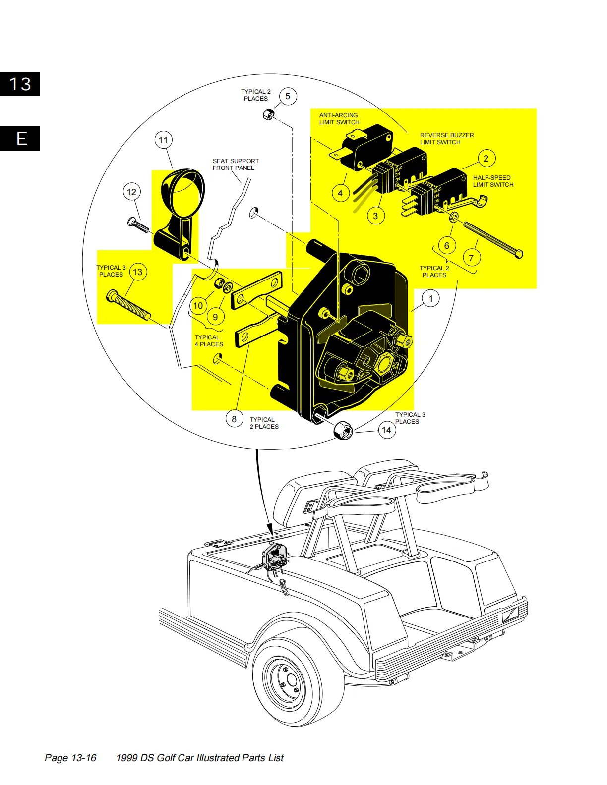 Club Car DS 1996-up 48V Golf Cart Forward and Reverse Switch, Powerdrive System, OEM# 101753005 102250201 101979101 1014808 1012987